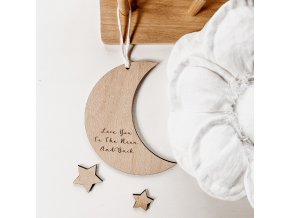Cedulka ve tvaru měsíce s textem na přání, jménem ....Cedulka je vyrobena z 4mm bukové překližky pomocí laseru. Plochy jsou pečlivě broušeny. bez povrchové úpravy.