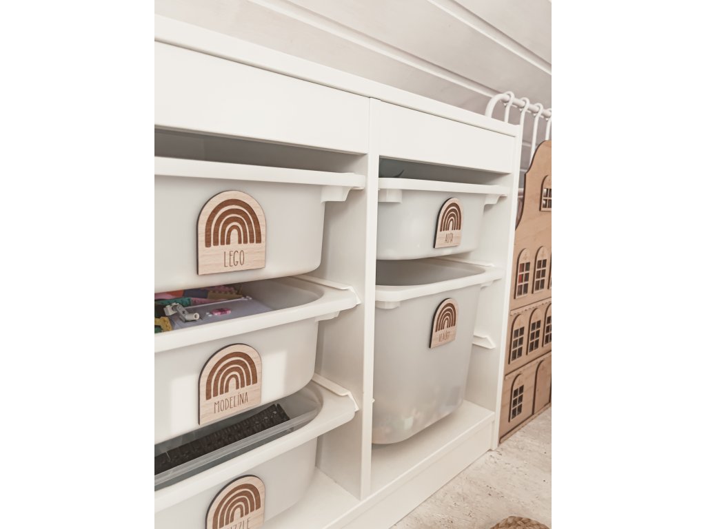 Dřevěné cedulky z bukové překližky na boxy. Každá hračka, kostka, drobnůstka bude mít své místo. Vybírat si můžete z různých tvarů, fontů písma, designů. A když nevyberete z naší nabídky... napište nám a určitě něco vymyslíme a doladíme.