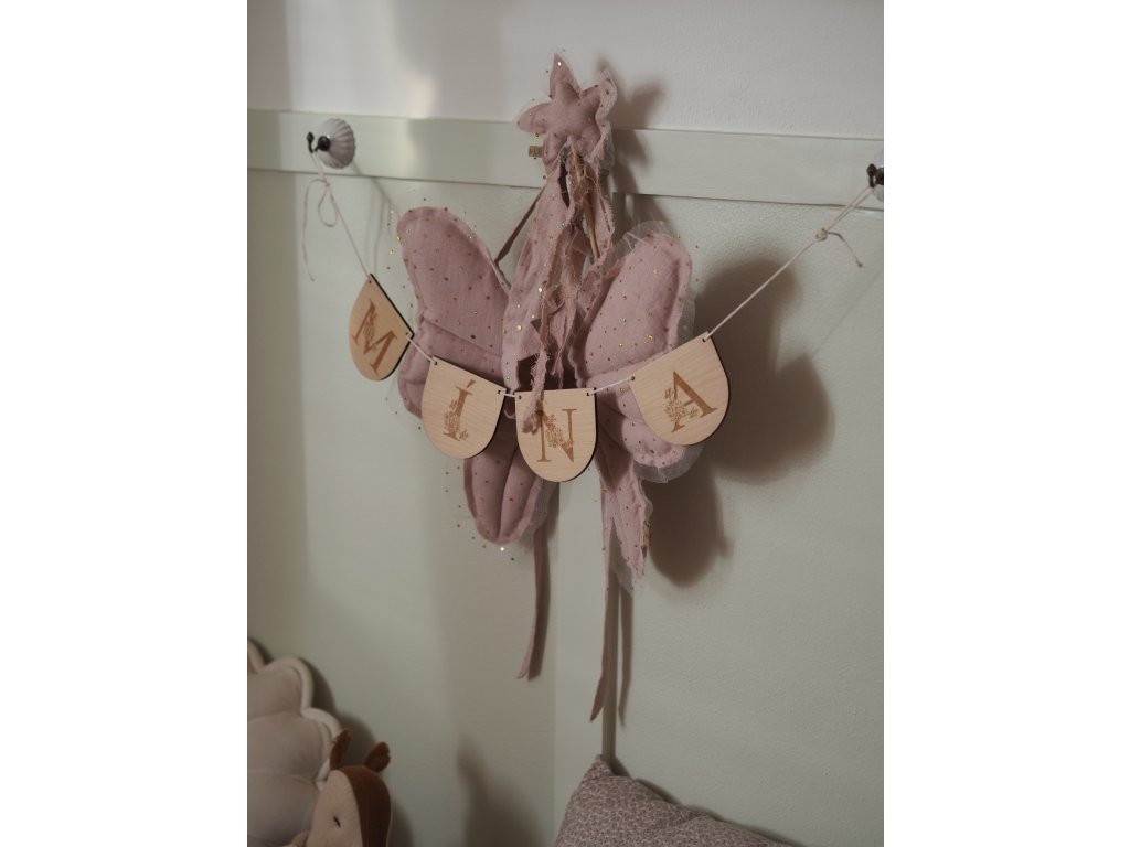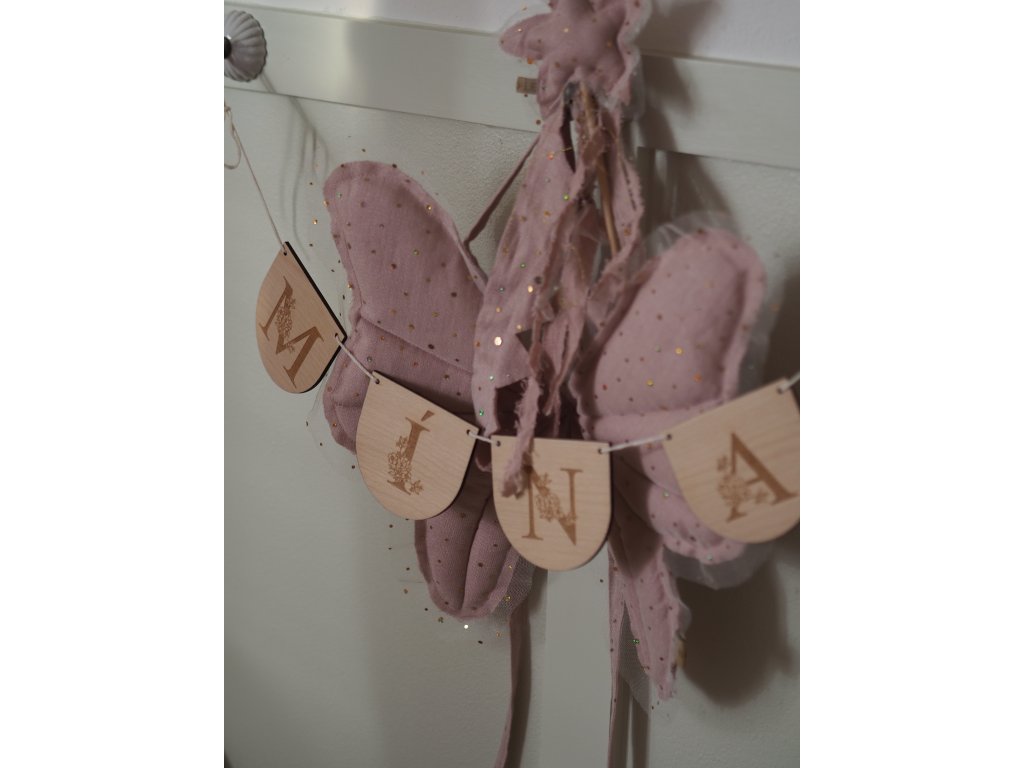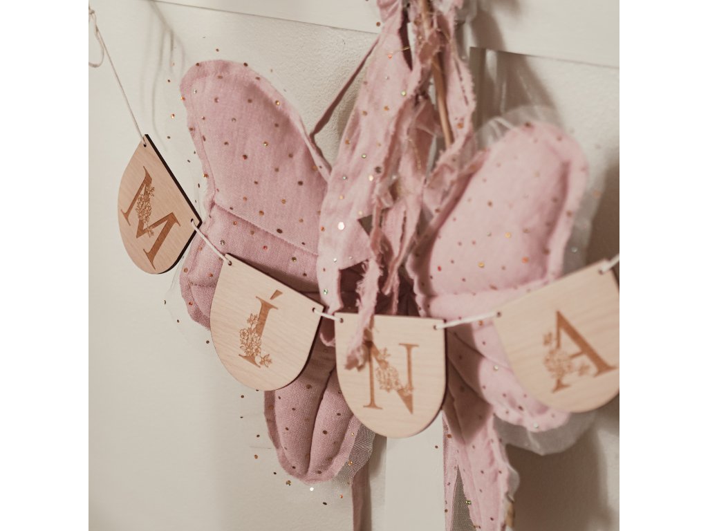 Krásná dřevěná girlanda s písmeny s květinovým dekorem na přání vyrobená z kvalitní 4 mm bukové překližky.