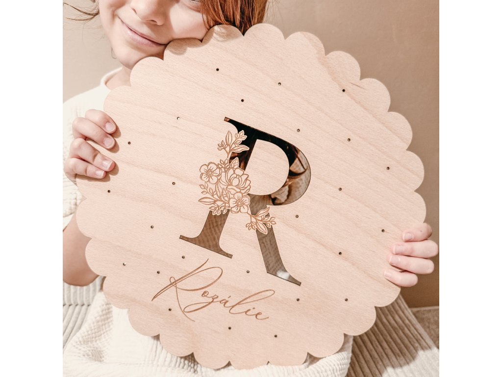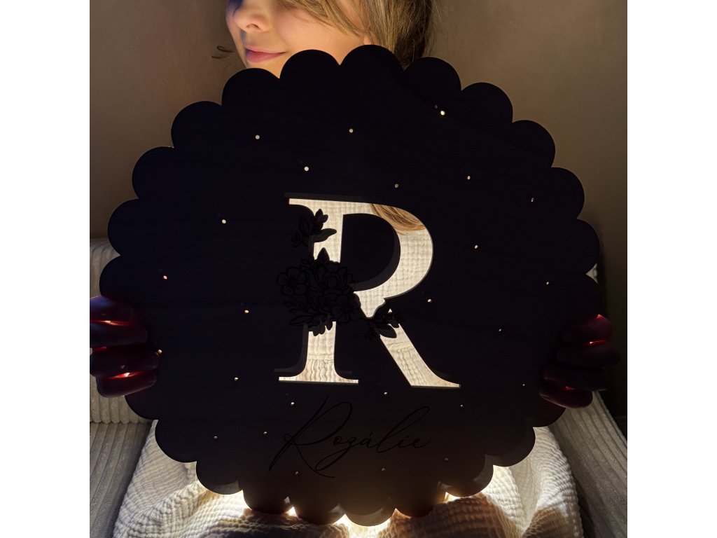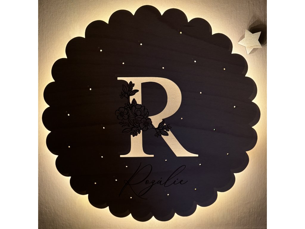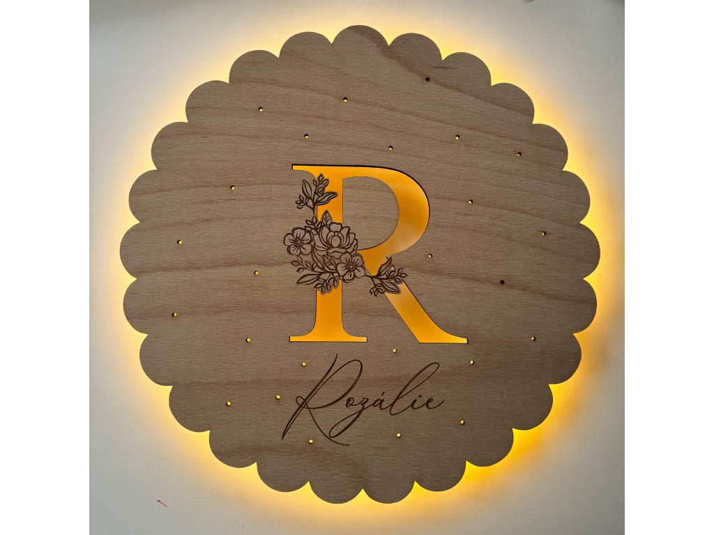 Lampička Vlnka z přírodního dřeva jemně rozzáří prostor a díky jménu na přání se stane osobním doplňkem, který patří jen vašemu dítěti.
