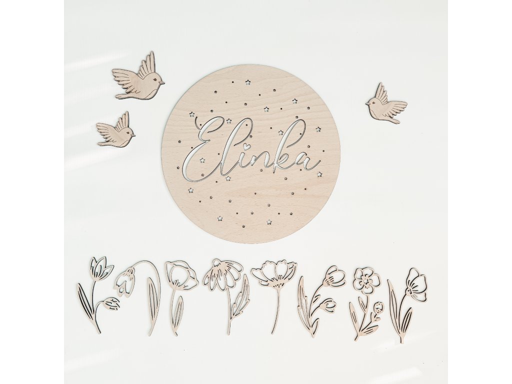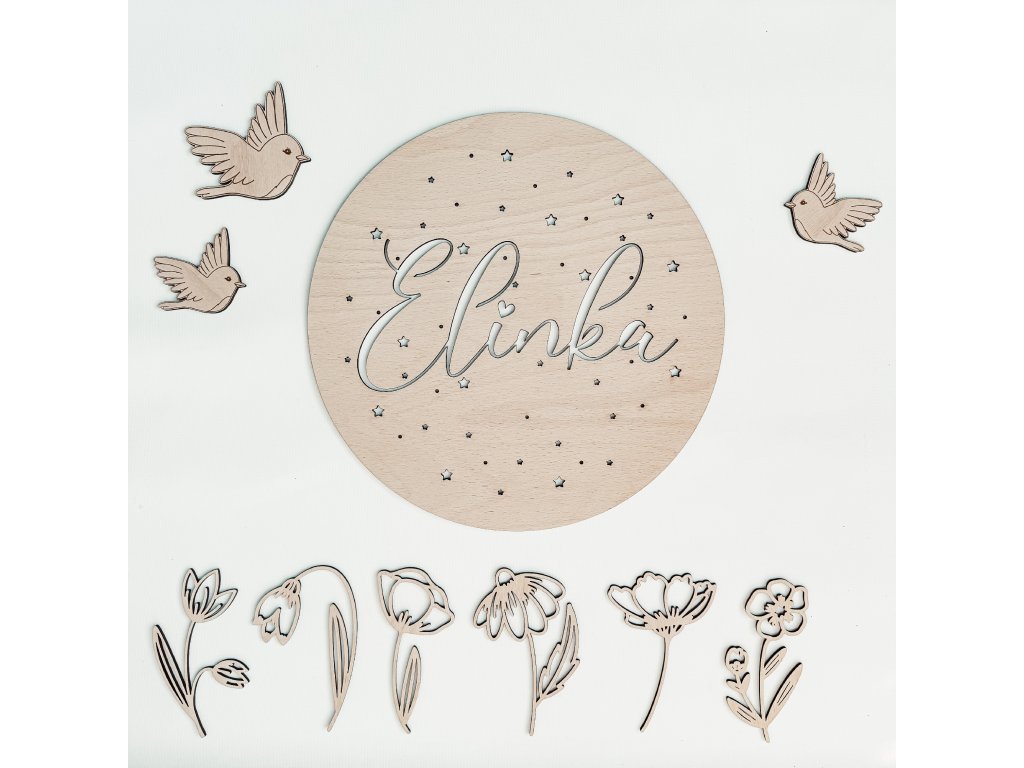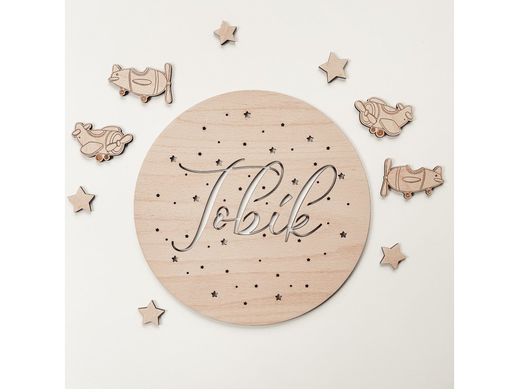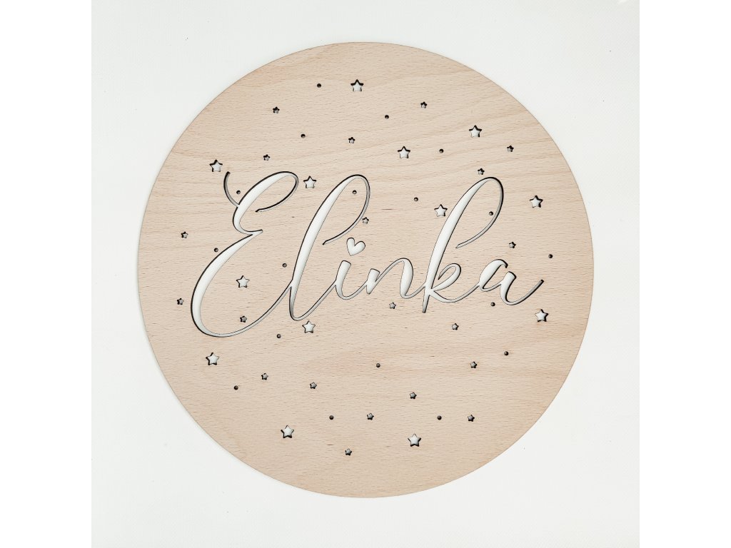Jméno, hvězdičky a souhvězdí jsou vyřízlé laserem naskrz, ve tmě tak krásně vyniknou.