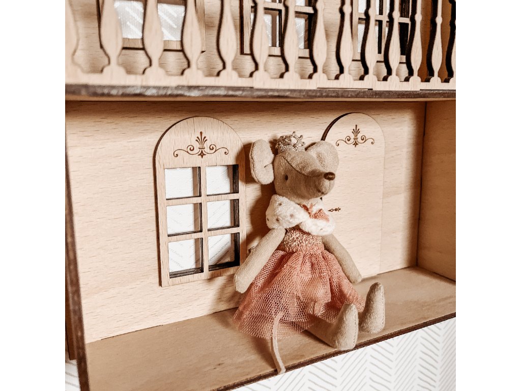 Domek je vyroben z 4mm kvalitní bukové překližky pomocí laseru, bez povrchové úpravy.