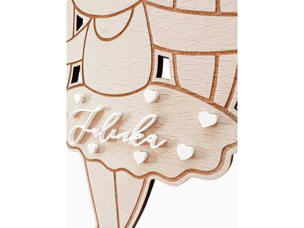 Sponkovník je doplněný jemnými stužkami, na které jednoduše připnete sponky. Díky jménu dítěte se stává originální personalizovanou dekorací.