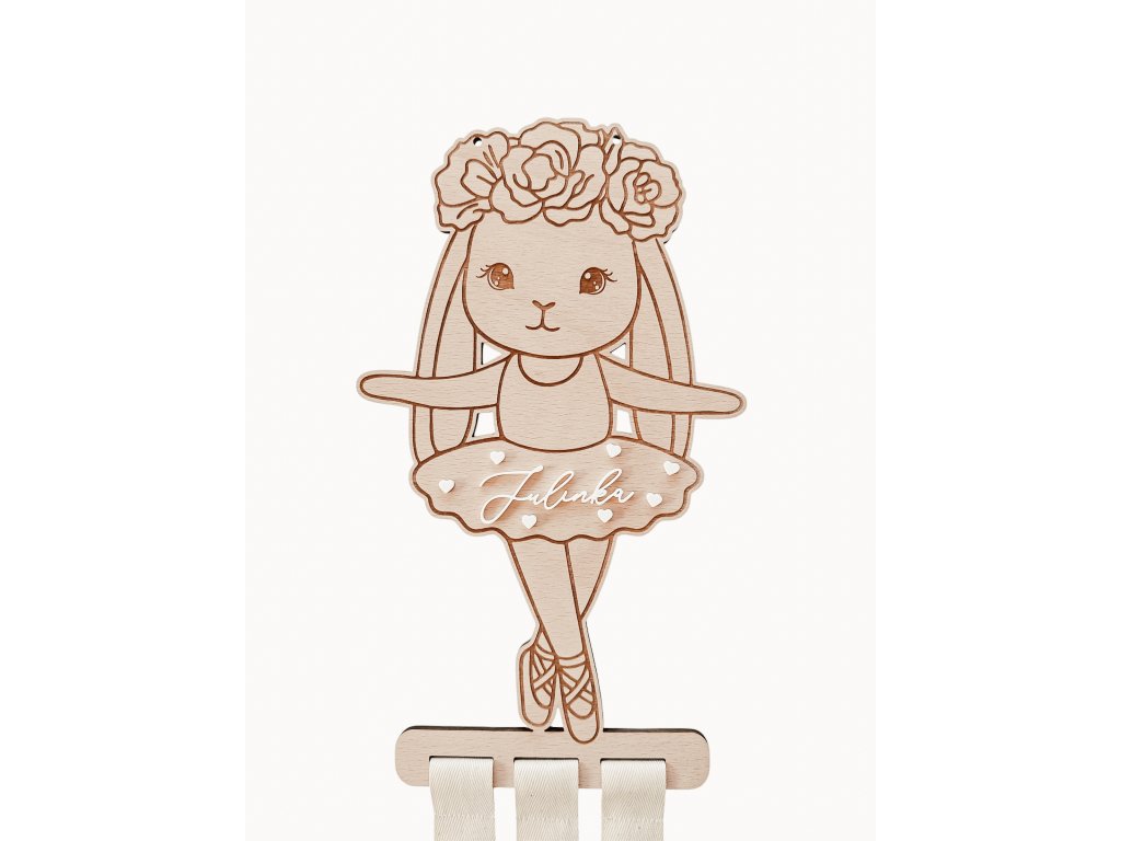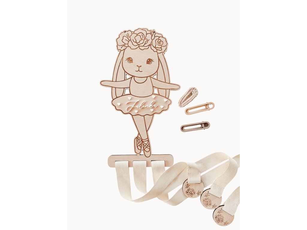 Roztomilý dřevěný sponkovník ve tvaru baletky – zajíčka je krásná a praktická dekorace do dětského pokojíčku. Pomůže přehledně uložit dětské sponky a zároveň ozdobí pokoj malé parádnice.